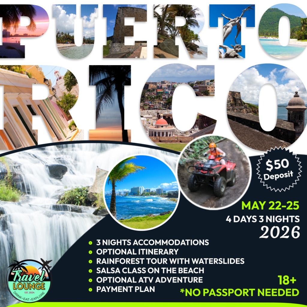 Join us on the beautiful island of Puerto Rico! No passports are needed for Travel and all ages are Welcome. You must be 21 to check-in to the hotel. Please read all the details below.
