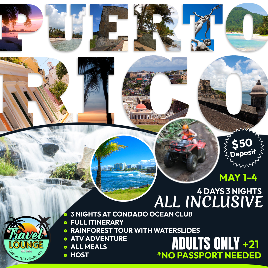 Come enjoy beautiful Puerto Rico with its natural waterfalls and amazing weather on this exclusive May Getaway. Bring your Besties or your other half, everyone is welcome as long as you are over the age of 21, as our stay is at an adults-only resort. You won’t have to worry about a thing when you arrive on this exclusive trip as everything is covered including your meals!